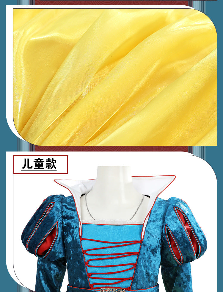 Classic Fairy Tale Princess Dress - Blue & Yellow Puff Sleeve Gown Adult & Kids Cosplay Costume
