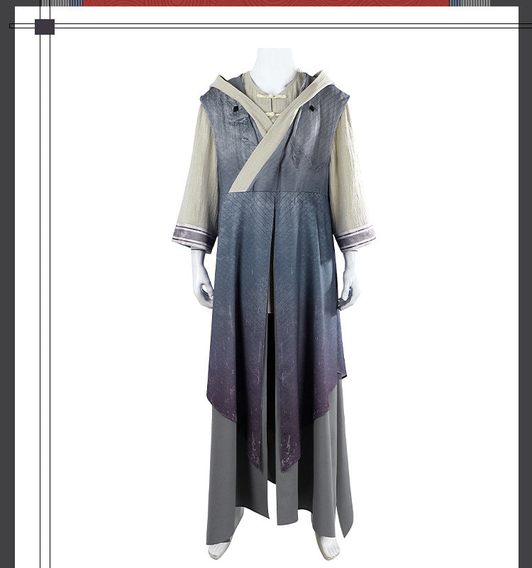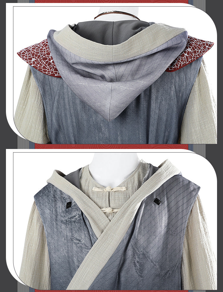 Eastern Warrior Red Black Robes with Conical Hat - Full Cosplay Suit Male | Staff Accessories Halloween Performance