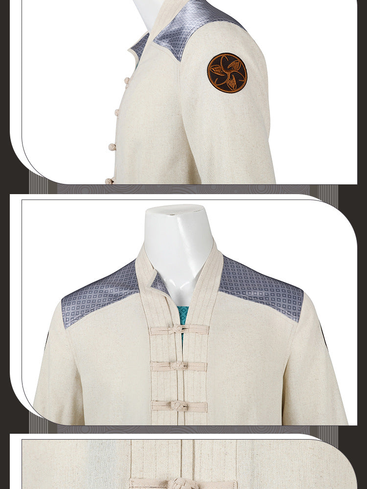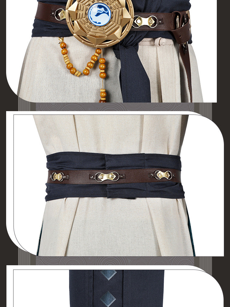 Electric Fighter White Outfit - Blue Accents Cosplay Suit Male | Belt Wrist Guards