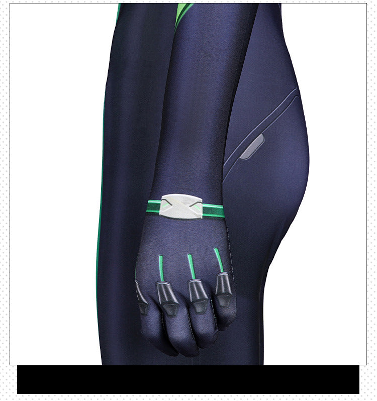 Toxic Green Black Tight Bodysuit Cosplay Set - Helmet Mask Gloves Belt Female Venom Theme Outfit