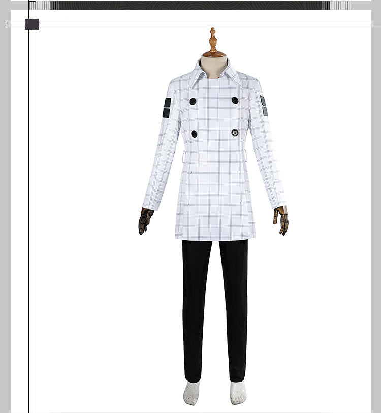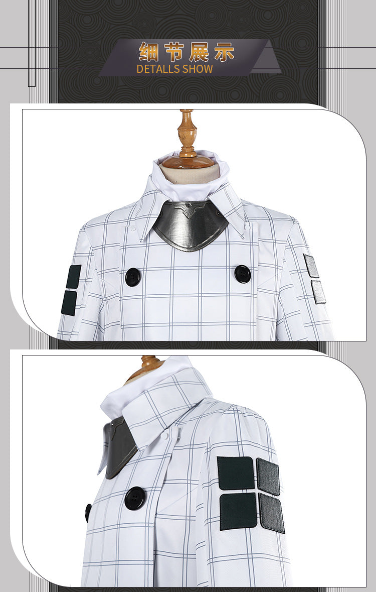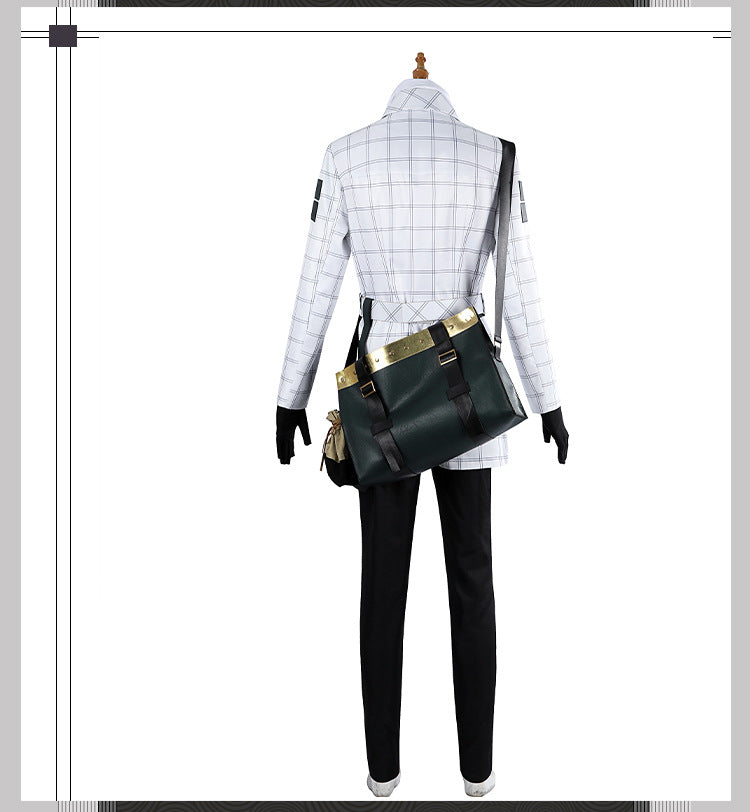 White Double-Breasted Adventurer Uniform - Blue Hairband Sword Scabbard Cosplay Set Male Secondary Style