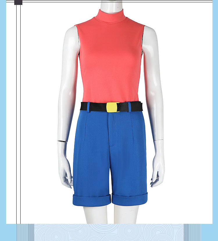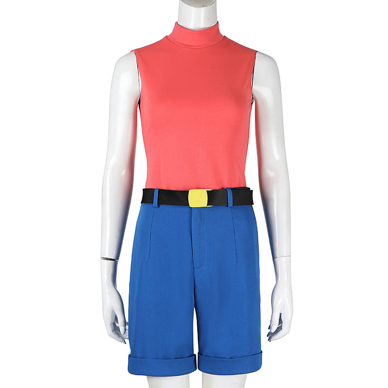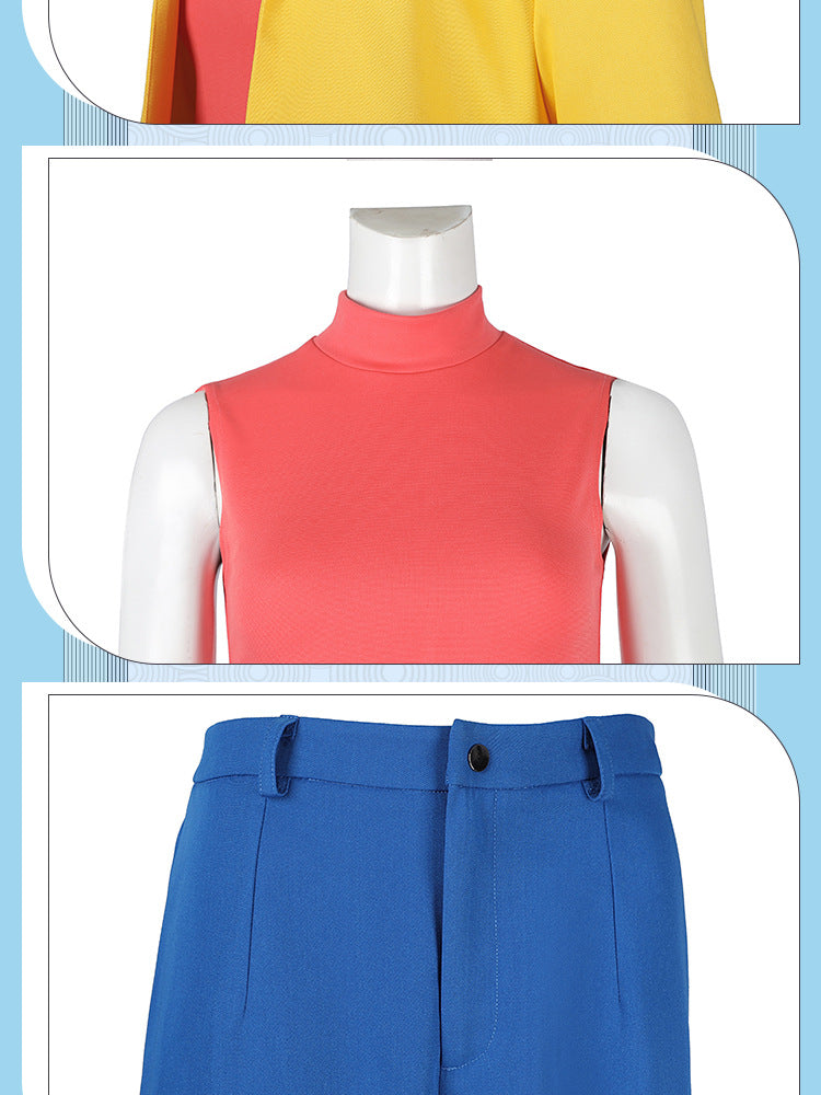Yellow Trench Coat Pink Shirt Ensemble - Full Cosplay with Sunglasses Gloves Belt Female Retro Anime Style